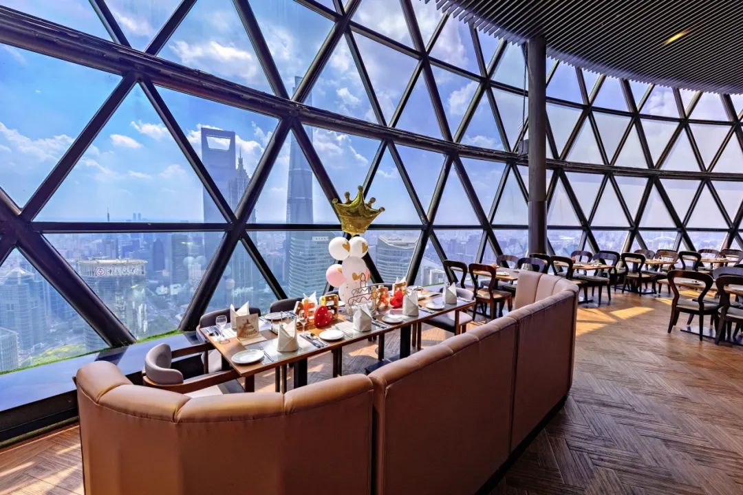 空中旋转餐厅,升级推出包间和卡座,宽敞明亮的球体玻璃窗外,浦江美景一览无余,每2小时旋转一圈的设计,让您全方位360度将申城美景尽收眼底。