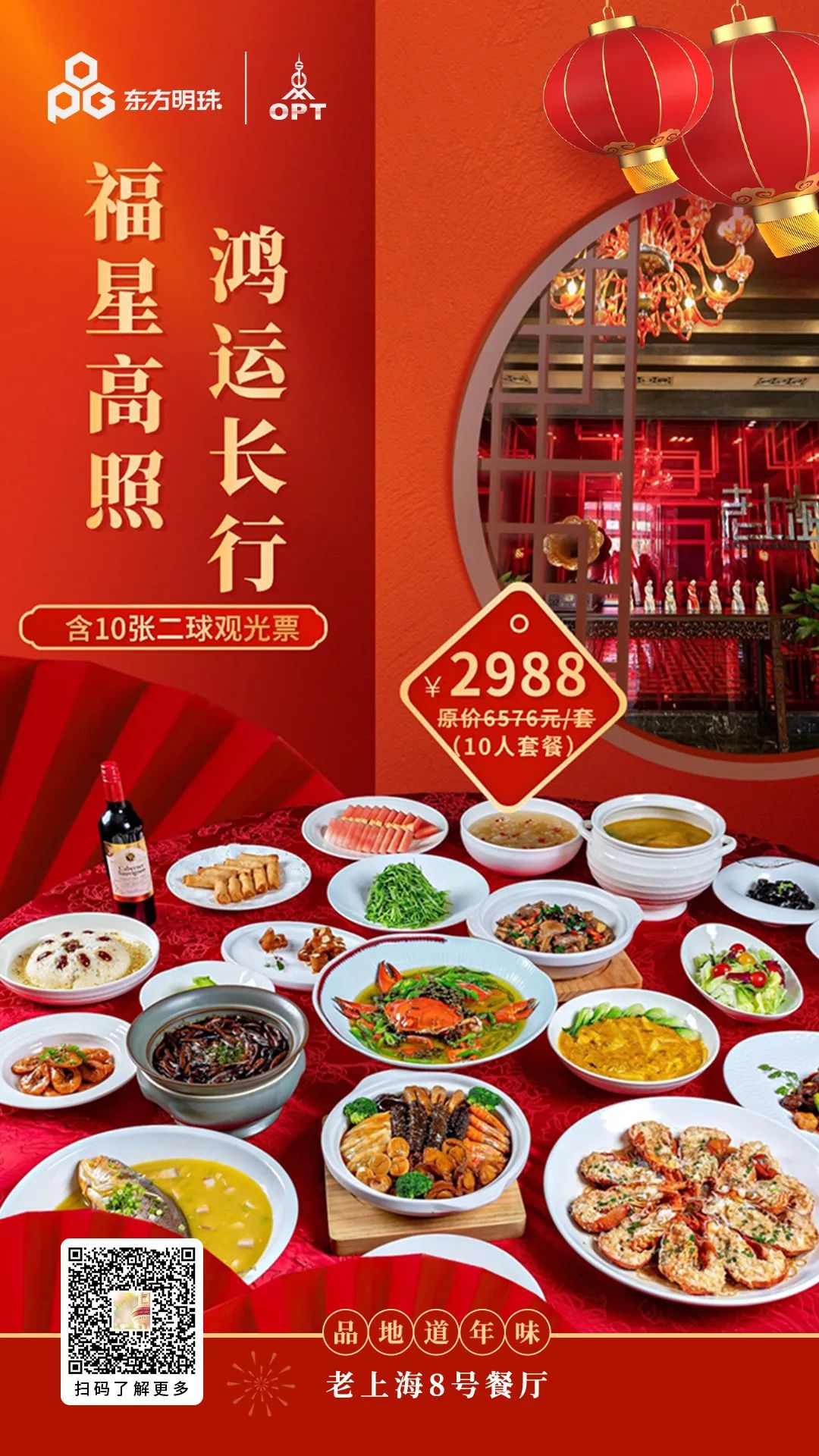 阖家团聚是每个家庭春节假期里的大事。人间至味是团圆,东方明珠塔特别推出10人登高团圆宴。尝美食、齐登高、贺新岁,一起共度美好时光!套餐还包含当日登塔门票,新春限时特惠,4.5折的优惠力度真的不容错过!