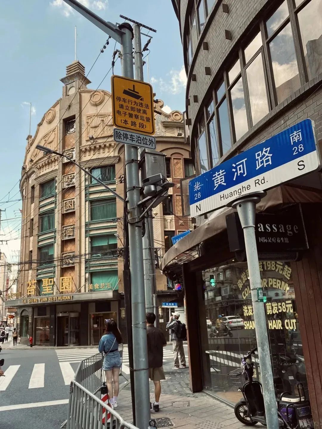 ✅黄河路:感受老上海的市井烟火,苔圣园依然矗立在那里,1993年开业,是当时最早入驻黄河路的本帮菜馆之一,见证了美食街的发展和变化,如今已成了上海旅游的“顶流”。