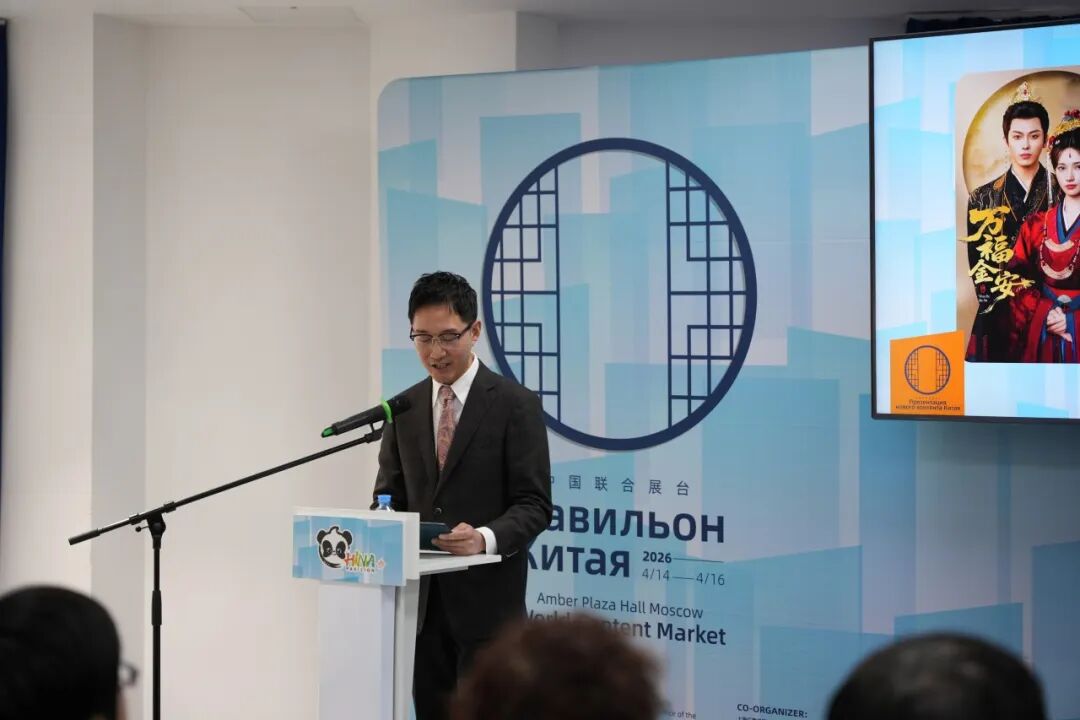 当地时间4月15日,2026年莫斯科世界内容市场(WCM)迎来了一场别开生面的中国视听盛宴——“中国视听沙龙”。在国务院新闻办公室和国家广播电视总局的指导下,由上海广播电视台(集团)主办、上海五岸传播承办的“中国视听沙龙”精彩亮相。中国驻俄罗斯大使馆公使衔参赞封立涛受邀出席活动并致辞。