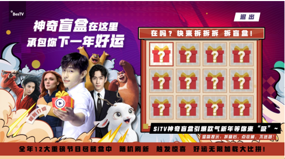 有线点播平台以传统年俗文化元素为核心,以盲盒形式盘点包含《花木兰》、《信条》、《护宝风云》、《豆神大语文》、《小猪佩奇》、《极限挑战》、《欢乐喜剧人》等在内的年度电影、电视剧、综艺、少儿、纪录片等大热节目,开启新年新气象。