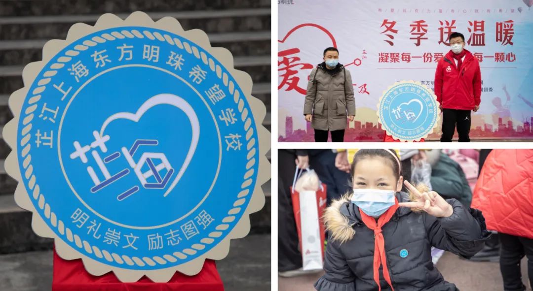 现场还揭晓并发放了由东方明珠受校方委托、为芷江上海东方明珠希望学校专门设计的校徽。校徽上 “明礼崇文 励志图强”八个字,蕴含着学校和明珠人对学生们的美好期望;设计上 “芷江”与“上海”两个城市名合二为一,代表着两地紧紧相连的深厚情谊。
