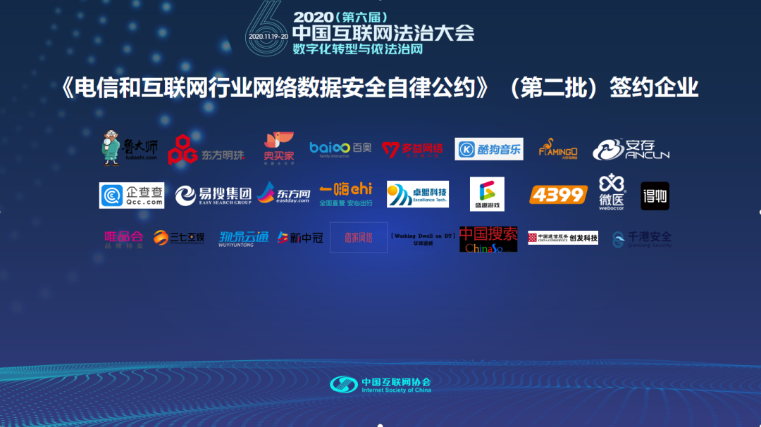 11月20日上午,中国互联网协会在2020中国互联网法治大会“数据安全论坛”上举行了《电信和互联网行业网络数据安全自律公约》(简称《公约》)(第二批)签署仪式。东方明珠新媒体股份有限公司(下称“东方明珠”)与爱奇艺、微博、东方网等75家企业成为签约单位,将汇聚更大的行业自律合力,推动数据安全自律工作进入新阶段。