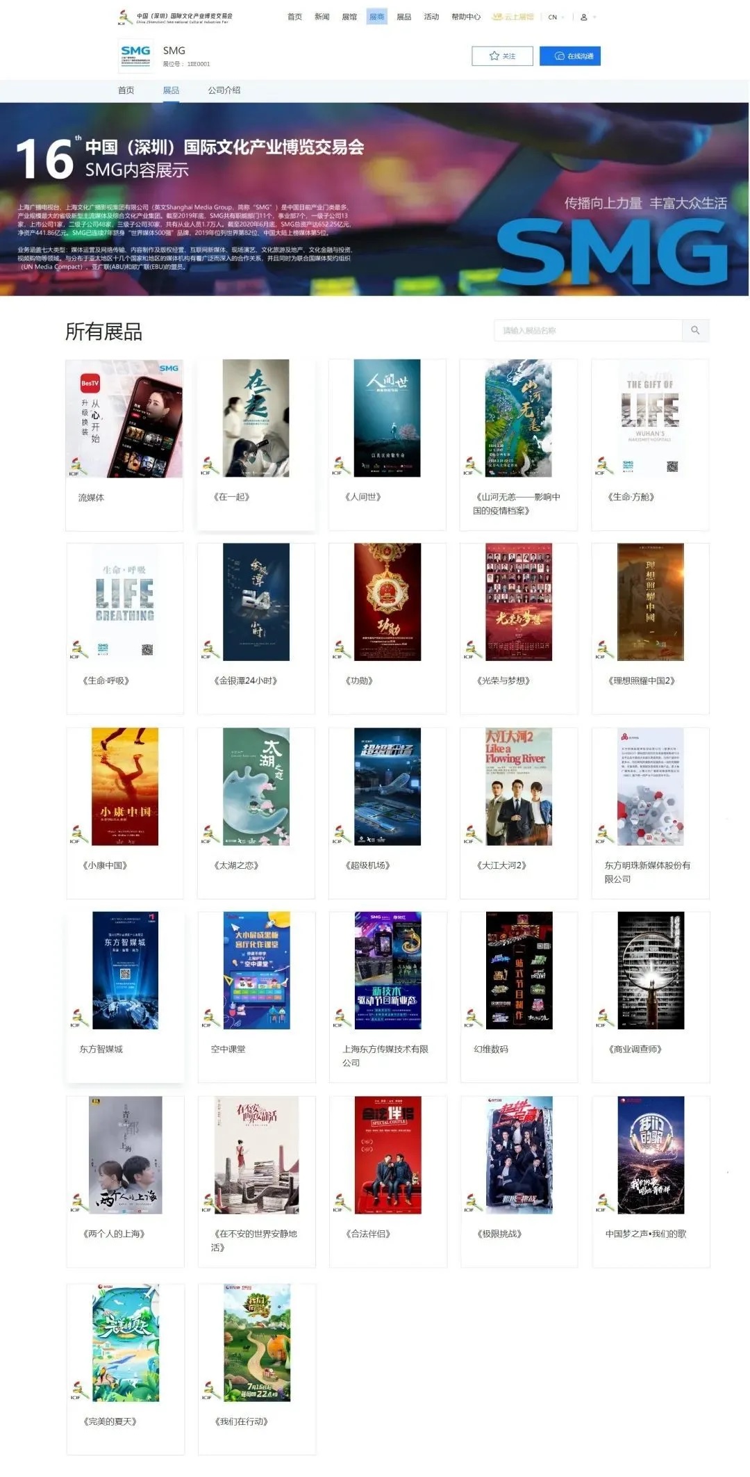 在5G、人工智能、大数据等技术支持下,云开幕、云展厅、云招商、云签约成为本届深圳文博会的一大亮点。展会以3D虚拟展厅+平面网页形式呈现,在云平台共设置12大3D虚拟展馆。SMG和东方明珠作为中国最具影响力和品牌价值的媒体集团之一,展出包括“内容+服务”双核驱动的5G时代应用平台BesTV+流媒体平台、全国首个智慧媒体产业聚集区“东方智媒城”、抗疫题材时代报告剧《在一起》等成果。