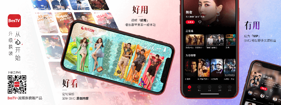 BesTV APP为BesTV+流媒体战略的旗舰产品,聚焦都市成熟人群,针对目标用户的习惯喜好,生活场景进行精准定位,提供有诚意的内容和服务。作为SMG和东方明珠统一、唯一的视频流媒体平台,BesTV+流媒体平台通过打通渠道和内容、大屏和小屏、专网和移动、线上和线下,为用户带来“好看、好用、有用”的使用体验。SMG的原创内容、东方明珠的版权影视等全品类精品内容,构成BesTV+平台坚实的内容优势。