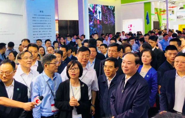 ▲ 中共中央政治局委员、中央书记处书记、中宣部部长、中央精神文明建设指导委员会办公室主任黄坤明,在上海市委常委、宣传部部长周慧琳,市委宣传部副部长王亚元等领导的陪同下参观SMG展台,上海广播电视台、上海文化广播影视集团有限公司党委书记、董事长、东方明珠新媒体股份有限公司董事长王建军向领导展示SMG最新的8k内容