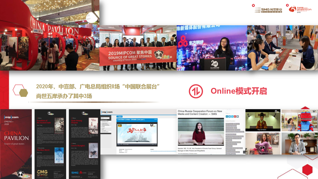 受中宣部、广电总局委托,尚世五岸一直是国际主要影视节展“中国联合展台”的长期承办者和运营者。鱼洁介绍,仅2020年的8场“中国联合展台”,尚世、五岸就承办了3场,不但把琳琅满目的展台搬上云端,还达成“更多、更丰富、更吸睛”三项模式升级,让国际影视交流无论是内容丰富性还是影响力都几乎未受影响。