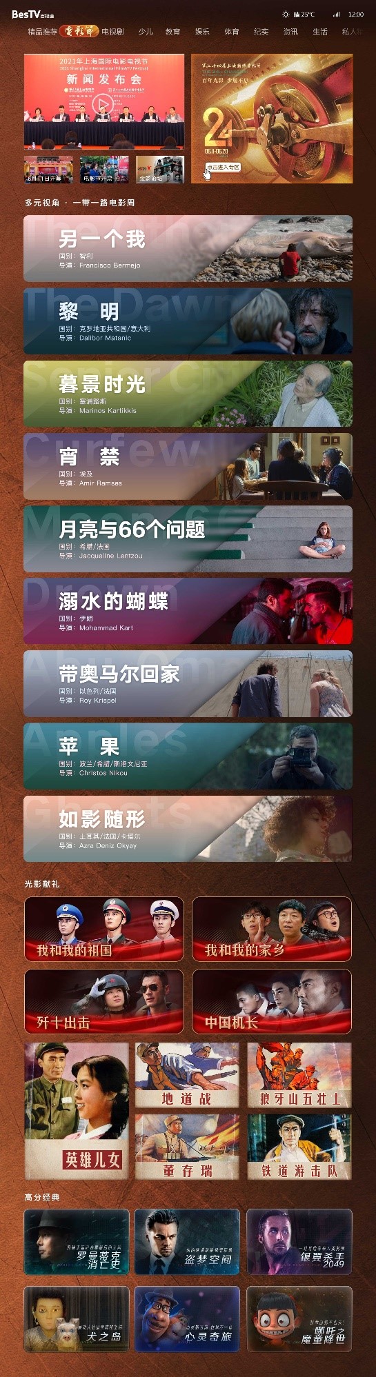2020年,上海国际电影电视节面对全球新冠疫情,通过从线上寻找突破口的创新,转化为成功举办的机遇,为全球影视节的举办提供了借鉴和示范。百视通则通过全媒体平台的综合效能,打造了与线下呼应的云上电影节。今年是庆祝建党百年的重大时刻,上海是党的诞生地和初心始发地,在“七一”前夕举办的上海国际电影电视节,意义非凡。百视通将积极发扬平台的媒体价值,致敬建党百年,展现百年光影风貌。