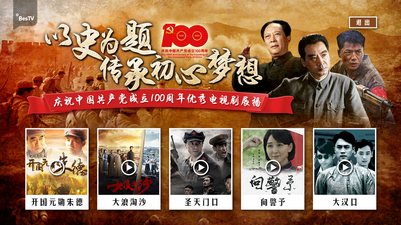 百视通IPTV还推出“百年寻梦 知史而奋进”影视主题专区,展映《党的女儿》、《闪闪的红星》、《铁道游击队》、《英雄儿女》、《横空出世》、《铁人》、《我和我的祖国》等影视剧,百视通OTT将于7月推出电影专题“党史精神谱”,在红色光影中回顾中国共产党的峥嵘岁月。