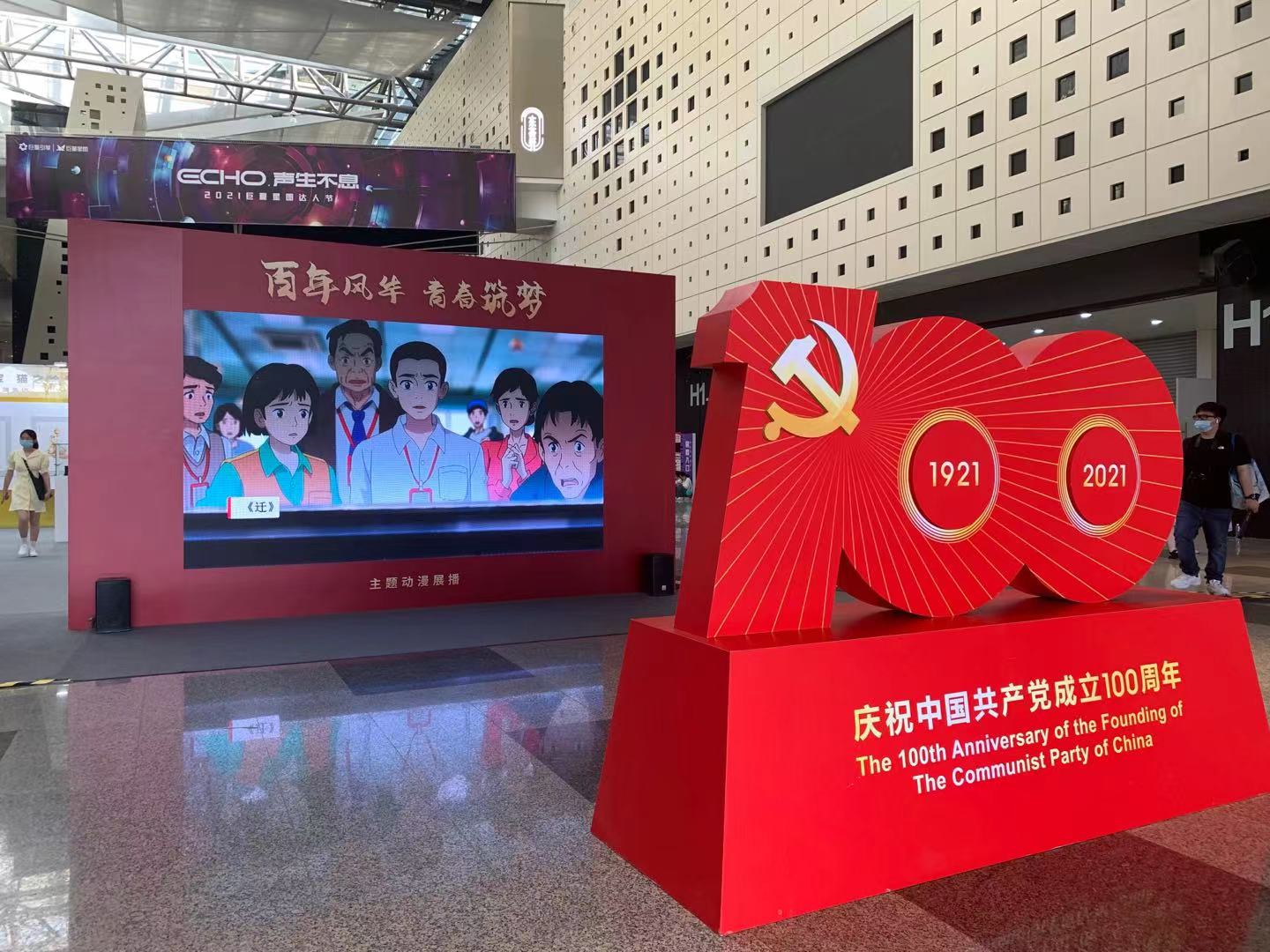 围绕建党百年主题,本届展会在中厅特设CCG EXPO“恰少年 筑未来”——庆祝建党100周年动漫主题展,展览包含《百年风华 青春筑梦——主题动漫展播》《血与火——新中国是怎样炼成的》人物长卷、《时光追溯 不负热爱》等精彩内容,用年青一代喜闻乐见的形式回顾党史。
