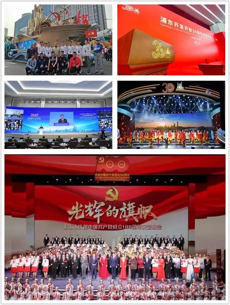 2020年广电制作担任《浦东开发开放30周年庆祝大会》的技术服务总协调、总牵头,这也是继《首届和第二届进口博览会欢迎晚宴》、《中法元首豫园会见》以来,广电制作第三次为习总书记在上海出席的项目提供专业服务保障。