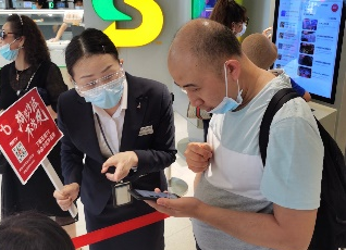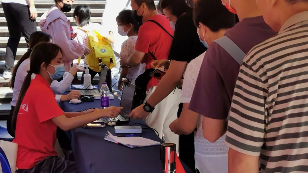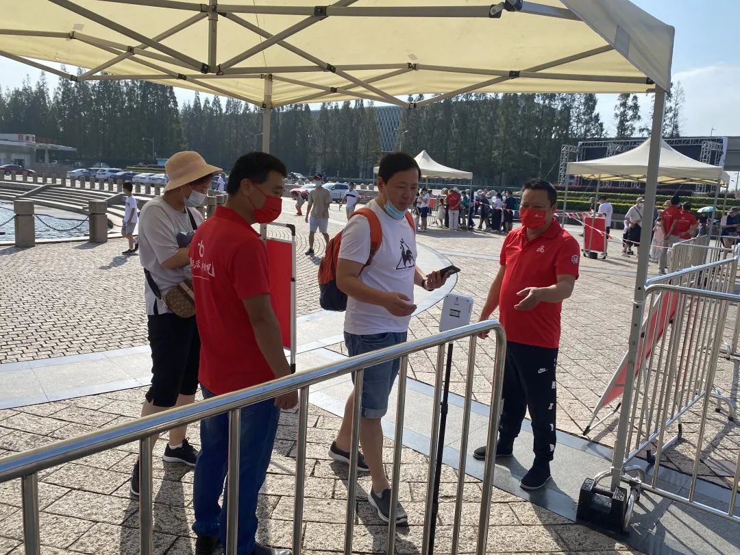 塔外的志愿者承担了入塔游客的身份验证工作,引导游客下载“百视TV”APP并注册会员。尽管连日来上海持续高温,面对大量的游客,OPG志愿者们始终耐心疏导,现场排队区秩序井然,各项志愿工作高效运行。