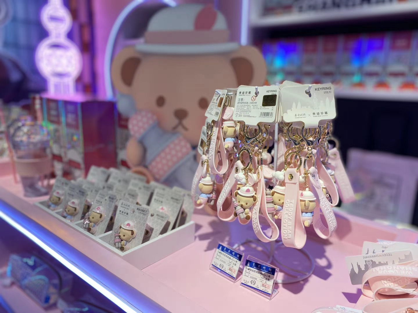同时渠道的市场化也在提速,除了塔内0米大厅特色各异的文创商店让男女老少“一天逛不够”,明珠文创产品还走向了更加多元的市场渠道:东方明珠饮用水已进入盒马鲜生线上线下渠道,消费者还能享受在家坐等外卖上门的服务;在浦东国际机场T1到达的罗森便利店,从整个店面场景打造、形象露出,到陈列出售的系列产品,均鲜明植入了东方明珠电视塔与泰迪珍藏的IP合作,酷萌兼具、科技感满满的形象和产品,带给各地游客强烈的“一眼心动”。