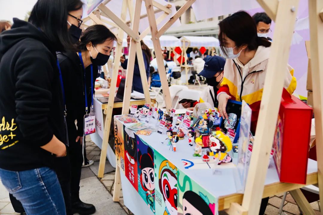 集市现场,公益摊位琳琅满目,既涵盖了健康咨询、普法宣传、文创产品义卖等便民服务,也有非遗文化体验、国产卡通人物现场绘画等文化展示。多姿多彩的服务项目吸引了周边不少市民驻足停留参与,构成了东方明珠广播电视塔下一道靓丽的志愿风景线。