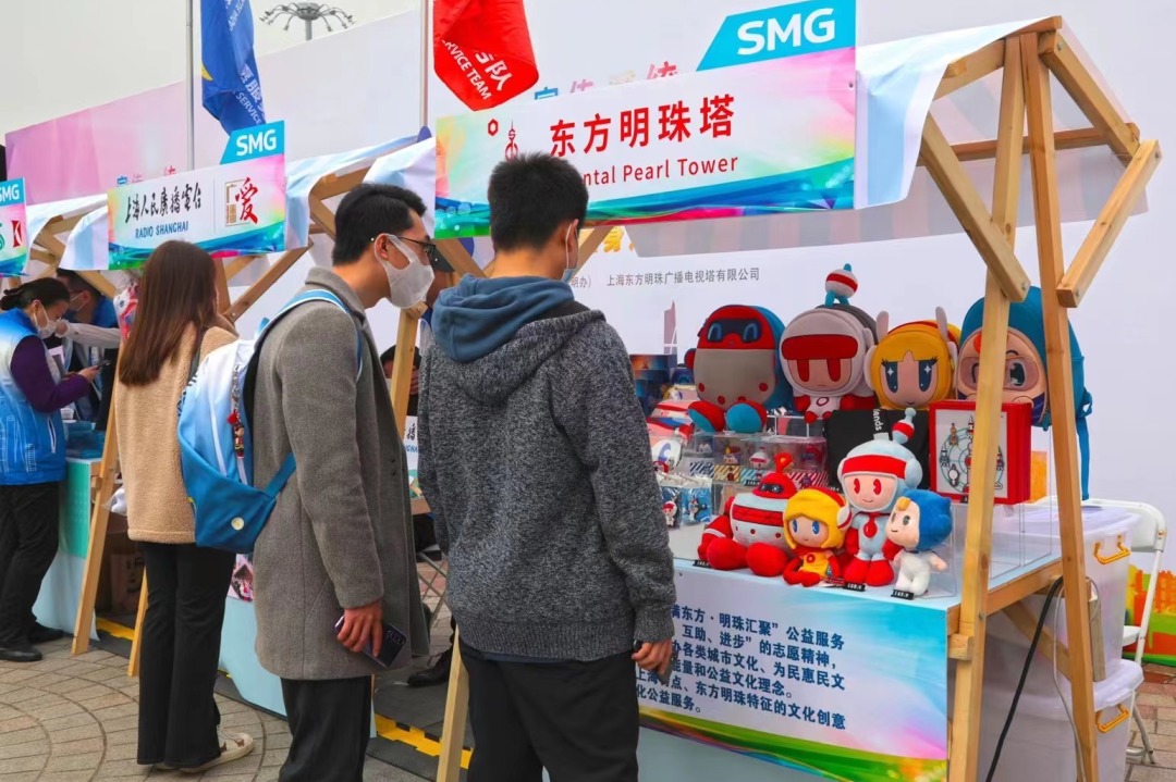 东方明珠广播电视塔公益摊位同样看点十足,以传承非遗文化元素、引领新国潮的文创产品为载体,鲜明展示了上海特色品牌文化,积极展现明珠文化公益服务,将“奉献、友爱、互助、进步”的志愿精神传达给市民游客。东方明珠广播电视塔作为上海地标,不断打造与上海市民美好生活相关的全品类产品体系,在彰显地域特色和上海文化内涵的同时,逐步走进大众日常生活场景,传播海纳百川、追求卓越的上海精神。
