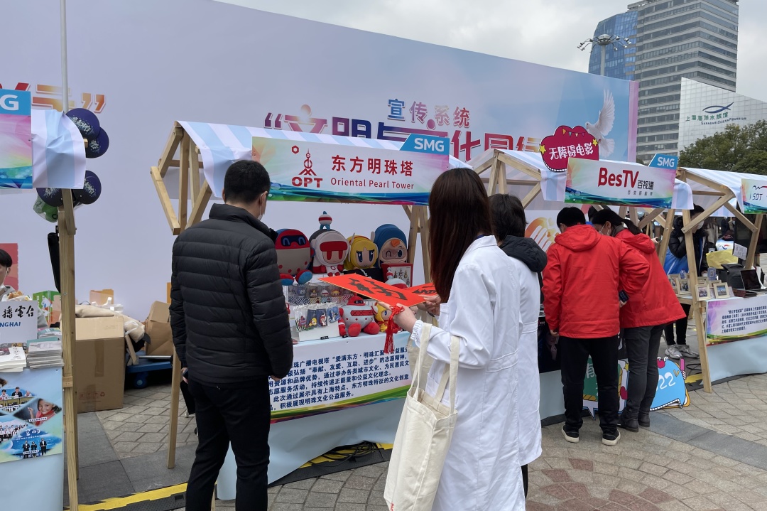 此外,SMG旗下融媒体中心、东方广播中心、上海歌舞团、技术中心SMT、小荧星集团、五星体育等单位的公益摊位,也纷纷展示了党史学习教育、急救知识普及、冬奥运动体验、人物速写服务、裸眼3D体验、古谱诗词等丰富多彩的志愿服务。
