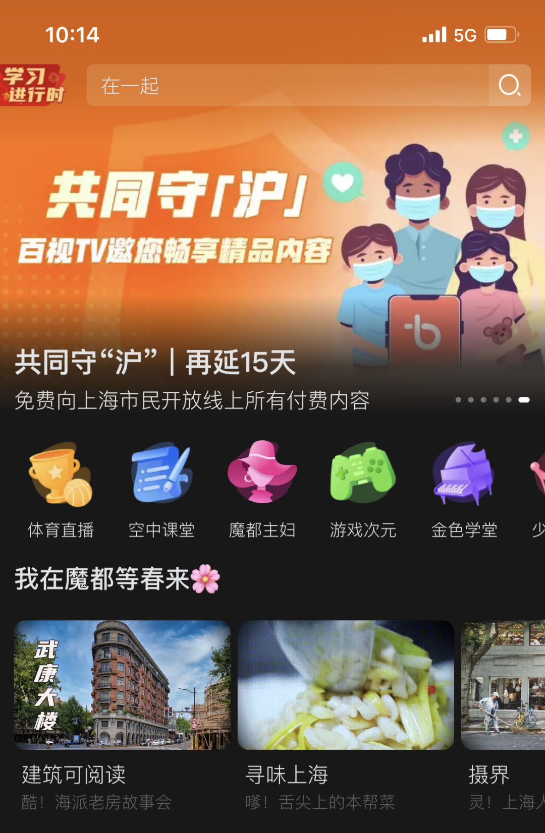 在此之前,为积极响应上海市网络文化协会党委的号召,在网信部门的指导下,百视TV整合SMG、东方明珠新媒体优质资源,自3月17日起至3月31日,向全上海市民免费开放所有线上付费内容。