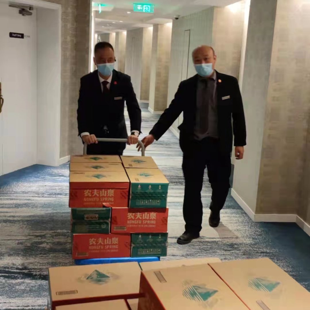 4月3日下午6点,满载着146位“最美逆行者”的大巴抵达国会中心,迎接他们的是酒店团队精心准备的温暖欢迎。根据医疗队要求,酒店迅速对场地设施进行了调整和再布置。当晚8点,146份热气腾腾的餐盒,承载着酒店团队的心意和问候,准时送达每一位医疗队成员的房间门口。