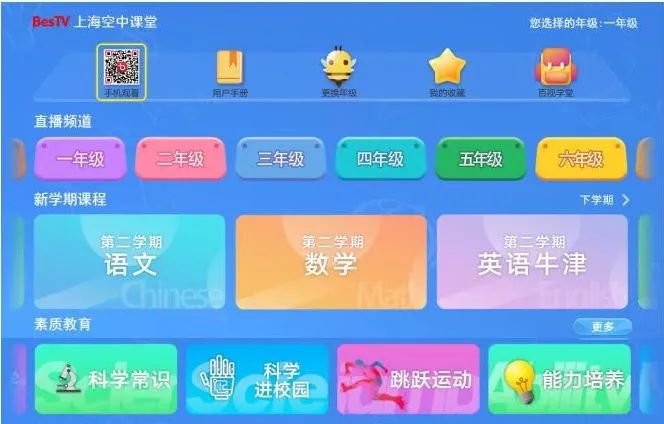 上海虹口广灵路小学学生家长戴先生表示对“空中课堂”效果很满意,“完全匹配上海教学内容,用点播可以实现课程进度无缝衔接,而且授课老师都是名师,有线电视大屏画质也很不错,课程效果很好!”