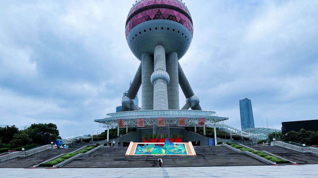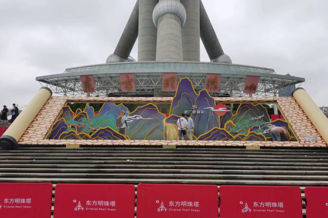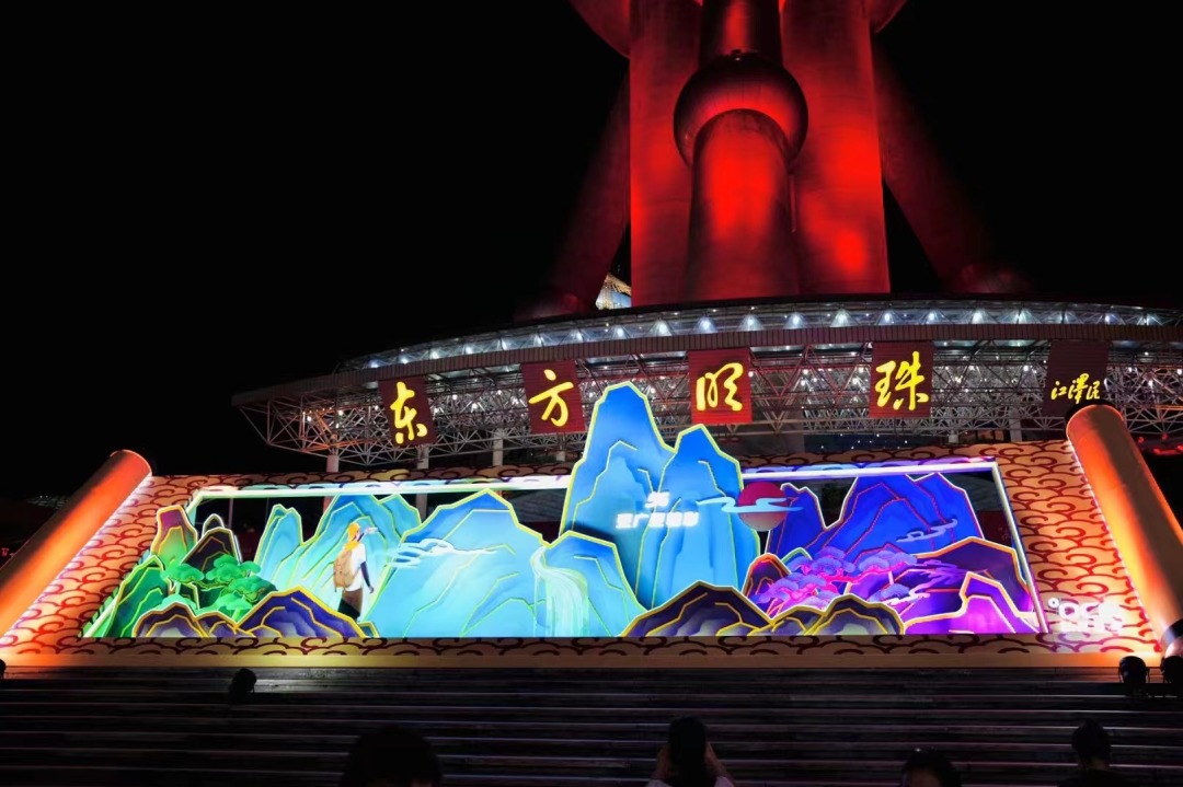 十一期间,东方明珠新媒体股份有限公司旗下上海广电影视制作有限公司特别设计了“山河画卷”艺术装置,在上海东方明珠广播电视塔展出,供来塔游玩的市民游客“打卡”体验。该装置以创新的理念,灵动立体的舞美灯光设计为上海的城市名片增加一抹亮色。节日期间,不少市民前来打卡,记录下这一幅别具特色的山河画卷。