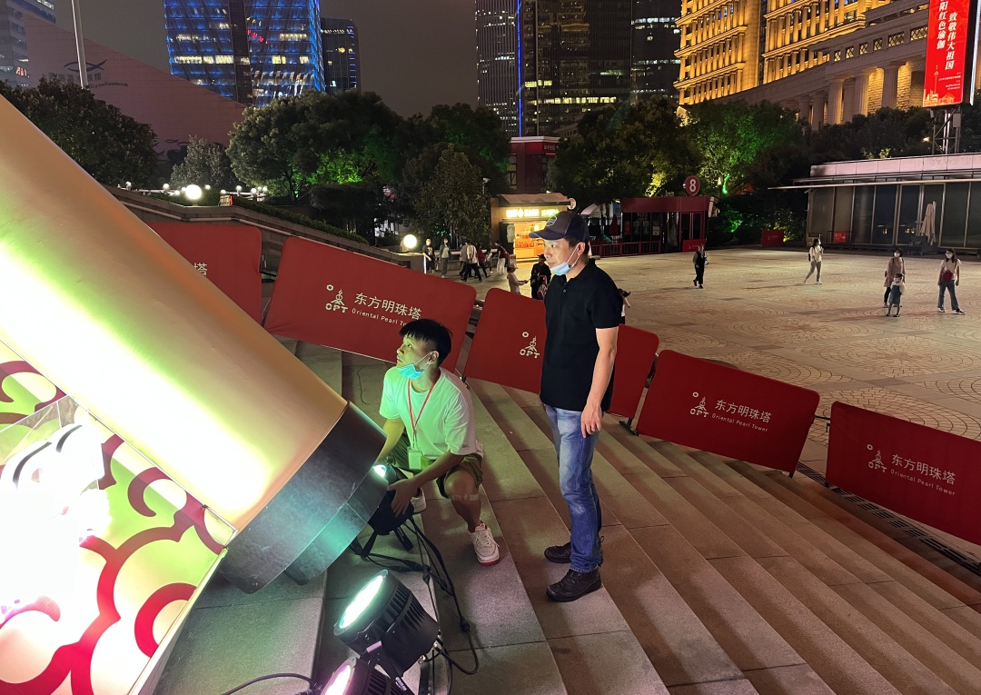 东方明珠广播电视塔作为上海的地标建筑之一,游客接待量众多。节日期间,广电制作安排了24小时专人值班,确保装置长亮,同时,针对户外装置的具体情况,制定了应急预案。严谨细致,力求完美。