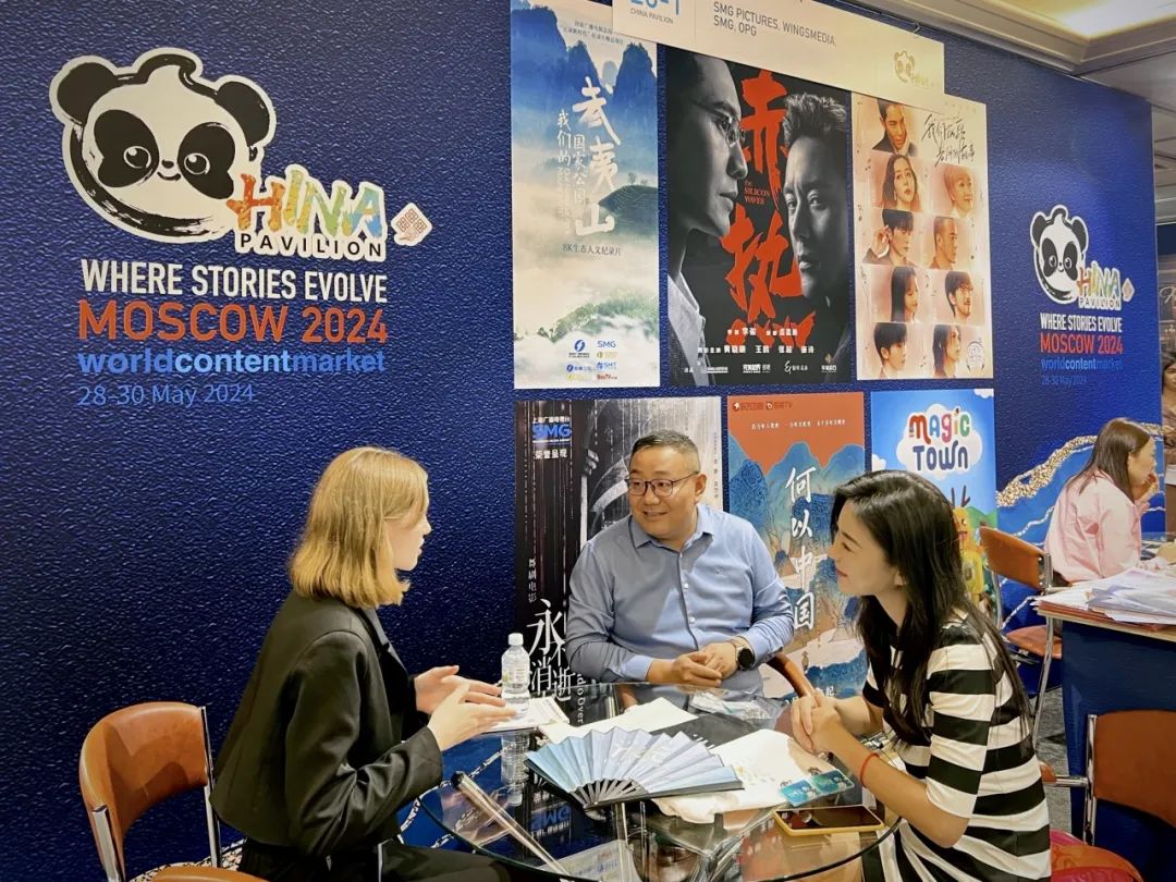 莫斯科世界内容市场(WCM)于2024年5月28日至5月30日在莫斯科举行。上海五岸传播有限公司承办“中国联合展台”,代表上海广播电视台(SMG)和东方明珠新媒体股份有限公司设展,同时于5月29日承办“中国主题日”系列活动。活动期间,五岸传播还与俄罗斯SPB TV、Vintera TV就俄罗斯“白玉兰剧场”项目进行了签约。