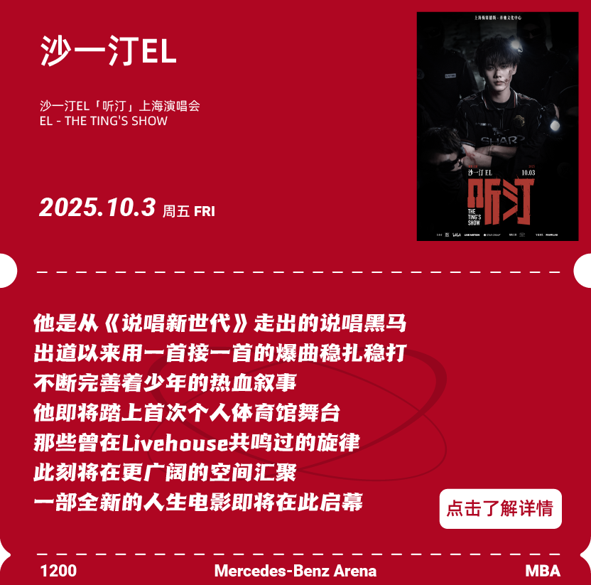 10月的上海演艺精彩不断,东方明珠旗下梅赛德斯-奔驰文化中心迎来多场备受期待的演出与赛事。从沙一汀的热血说唱、蔡琴的隽永金曲,到威神V的炸裂舞台、跨次元乐队BanGDream!的Live震撼,再到英雄联盟S赛的巅峰对决,音乐与电竞在此激情交响,打破所有次元壁。