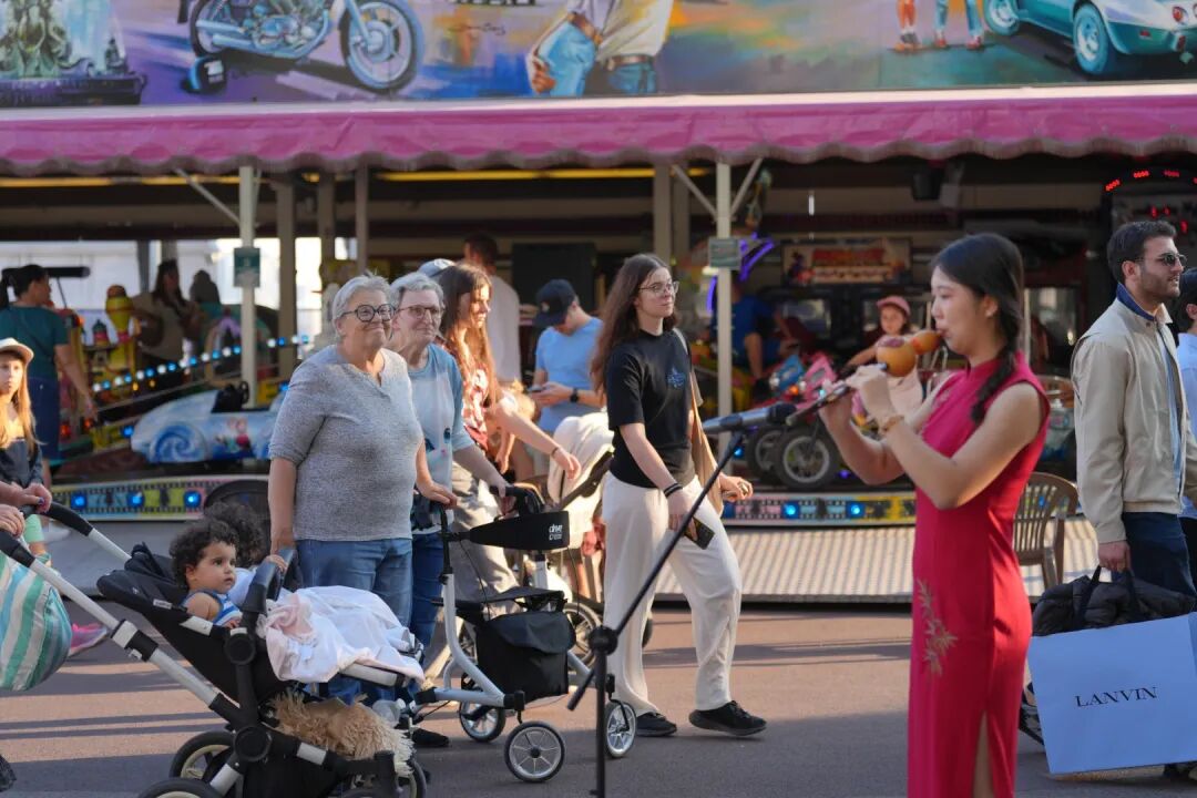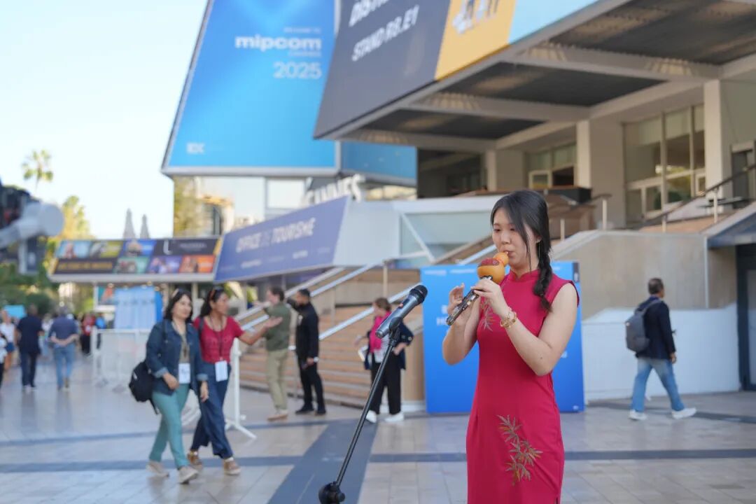 身着传统服饰的非遗演奏家,携“会呼吸的遗产”——葫芦丝,在影节宫内外倾情奏响《月光下的凤尾竹》等经典乐章,使“中国联合展台”化身为整个会场的“声景地标”。