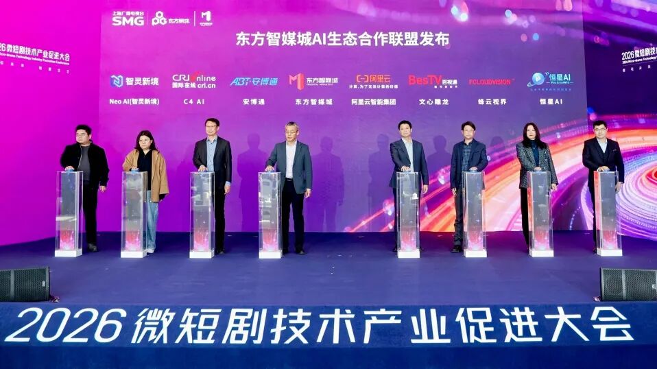 3月11日,以“智引未来·链聚生态”为主题的2026微短剧技术产业促进大会在东方智媒城举行。本次大会由上海市文化和旅游局、上海市广播电视局、上海市闵行区人民政府指导,上海市网络视听行业协会、东方明珠新媒体股份有限公司联合主办。活动紧扣国家文化数字化战略及广电总局“微短剧+”行动计划,旨在落实闵行区微短剧产业专项政策,推动人工智能与网络视听产业深度融合。